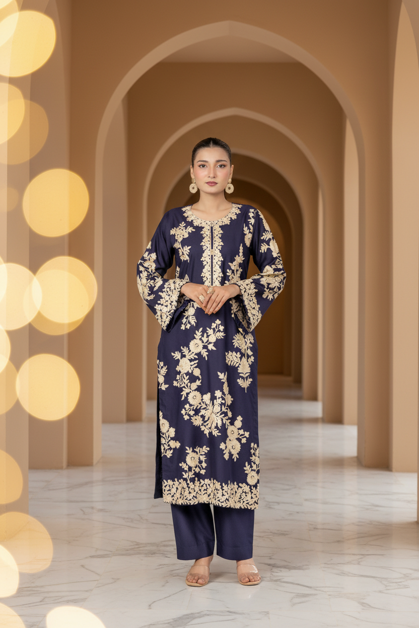 Navy Opulence (Embroiderd - Stitched 2 Pcs)
